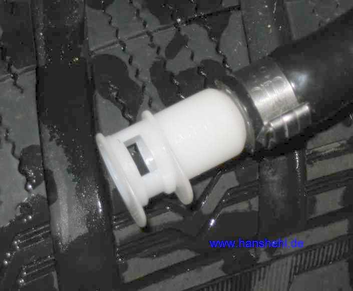 | Der Schlauch ist an der Pumpe gesteckt und mit einer Klammer gesichert, die man einfach abzieht. | ![]() |