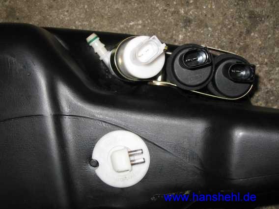 | Nachdem die Mutter am Halter des Einfüllstutzens abgeschraubt ist, kann dieser abgezogen werden. | ![]() |