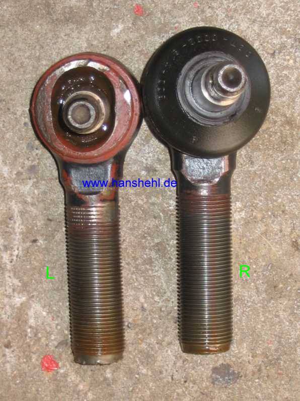 Ab Vorderachse Nr. 7007726 wurde das Gewinde des Gelenkstückes verstärkt (nun M24) und auch der Konus von 18 auf 20 mm verbreitert (Kronenmutter M16x1,5) , also sind auch größere Löcher im Lenkhebel! |