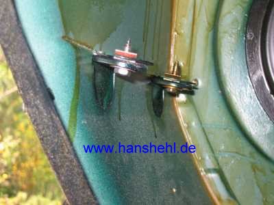 | Der braune Belag im ersten Bild (roter Pfeil) ist übrigens der Rost der Bohrspäne, die nach dem Bohren der Befestigungslöcher für den Frontbügel (siehe oben, Firmeneinbau!) nicht entfernt wurden. | ![]() |