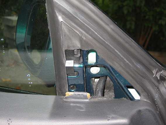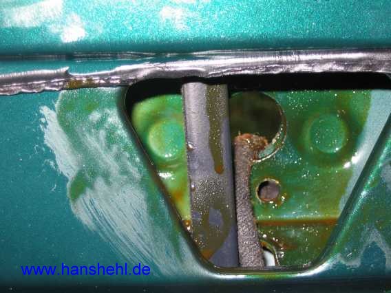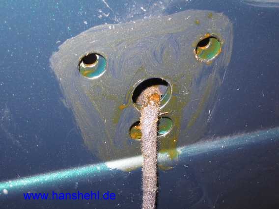 Alles mit Unterbodenschutzwachs behandeln. Auch die Auflagefläche der Spiegeldichtung an der Türwand und der äußere Spiegelfußrand werden mit Wachs bestrichen, ebenso die Türfläche innen. zurück zur Gesamtliste Umbauten G55AMG |