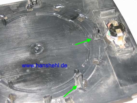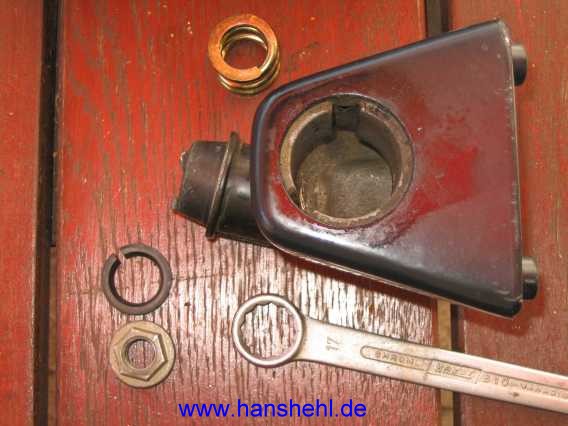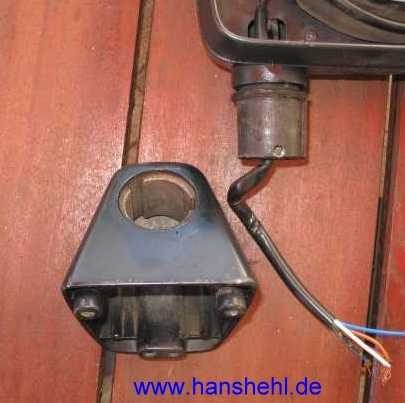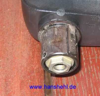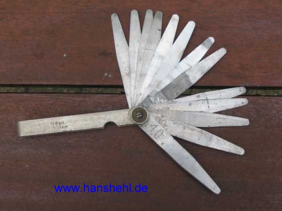 Wackelt der Spiegelfuß im Sockel, kann man einen passenden Stahlblechstreifen einer alten Fühlerlehre ( 0,05 mm abgestuft) dazwischen setzen. |