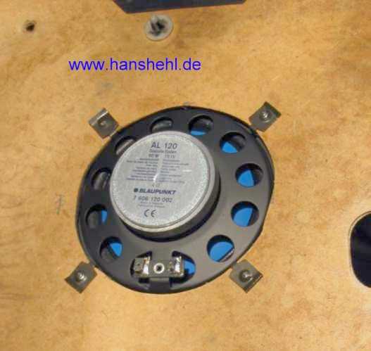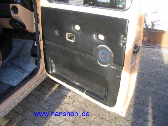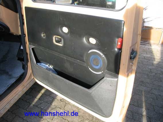 | Ein flacher Autolautsprecher von Blaupunkt passt zwischen linker oberer Ecke der Ablageschale und der Armlehne genau in die Aussparung der Tür. | ![]() |