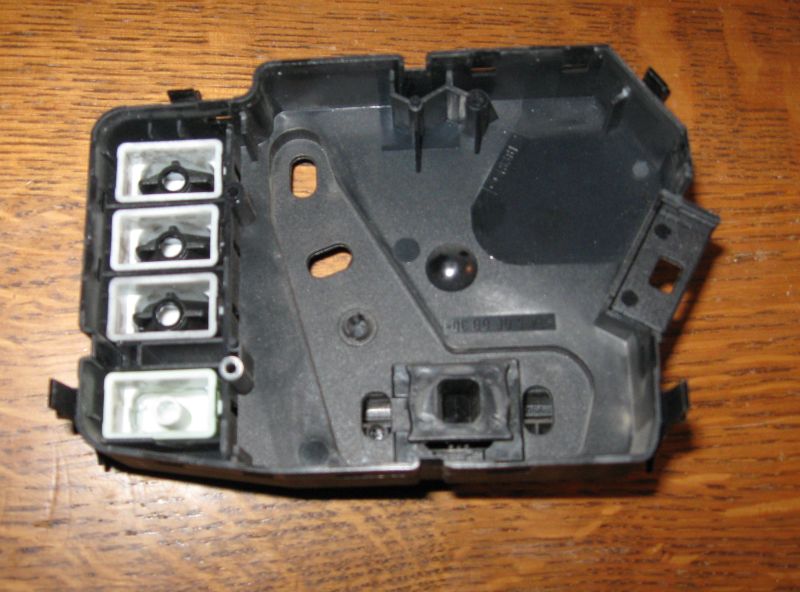 Die rechte Schaltergruppe Sitzmemory S90 A2108209010 (034631 15) ohne Lenksäulenverstellung von einem G400CDI von 3/2002 war defekt und wurde erneuert. Sie stand für die Dokumentation zur Verfügung (Danke U.M., G-Club). Die Gehäuseteile ließen sich mit einem kleinen Schraubendreher leicht trennen. |