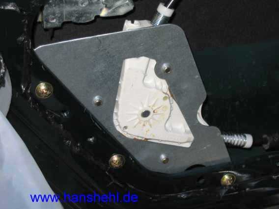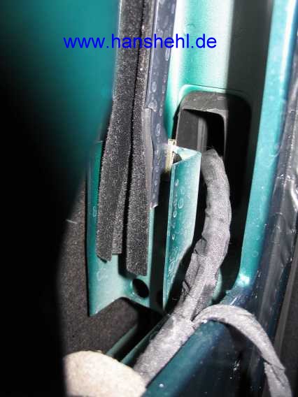 Der Ausbau der Türverkleidung der linken Fondtür ist bei der rechten Fondtür näher beschrieben und identisch. Die Blechteile in der Tür sind nicht konserviert und durch Feuchtigkeit besonders in den Ecken rostgefährdet, da nur grundiert. |