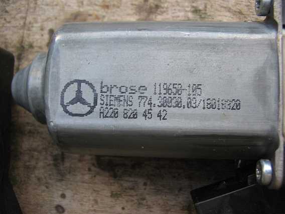 Das EPC-Net gibt keine Auskunft, ob die Motoren gleich sind. Erst ein direkter Vergleich zeigt, dass die 4 Motoren sehr ähnlich sind. Die aufgedruckte Nummer A2208204542 /Brose 119650-105 oder A2208204642 / Brose 119651-105 ist aber bestellbar. Der Motor ist im EPC-Net nur bei den Pkws, z.B. W220, W203, CL55AMG usw. aufgeführt und wurde dort bis 30.09.2002 verbaut. Siehe auch Fensterhebermotor 230 r230/sl55amg-fenster.htm#b42). |
