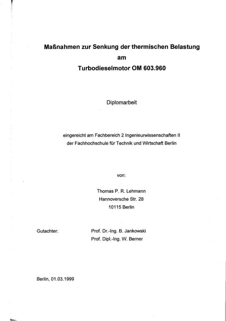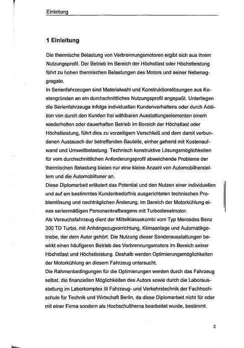 Thomas Lehmann untersuchte in seiner Diplomarbeit, wie beim Motor OM603.960, 300TD die thermische Belastung gesenkt werden kann. Beschrieben sind die konstruktiv-technischen Maßnahmen zur Motorkühlung und die durch Messungen belegte Verbesserung dazu. Diese können auch auf den G300TD angewendet werden. Die Arbeit steht inzwischen als PDF-Datei (10 MByte) zum Download zur Verfügung: Diplomarbeit (anklicken oder rechte Maustaste, Ziel speichern unter ... usw.). |