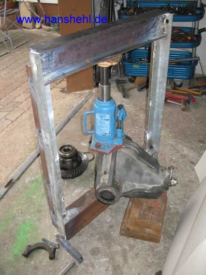 Meine 12t-Selbstbau-Presse, siehe auch : Längslenker/Schubstrebe, müßte eigentlich auch hier funktionieren. Die senkrechten Streben muß ich aber noch verstärken. Das 2. Bild zeigt auch eine Selbstbau-Presse von R.Wetzel. |