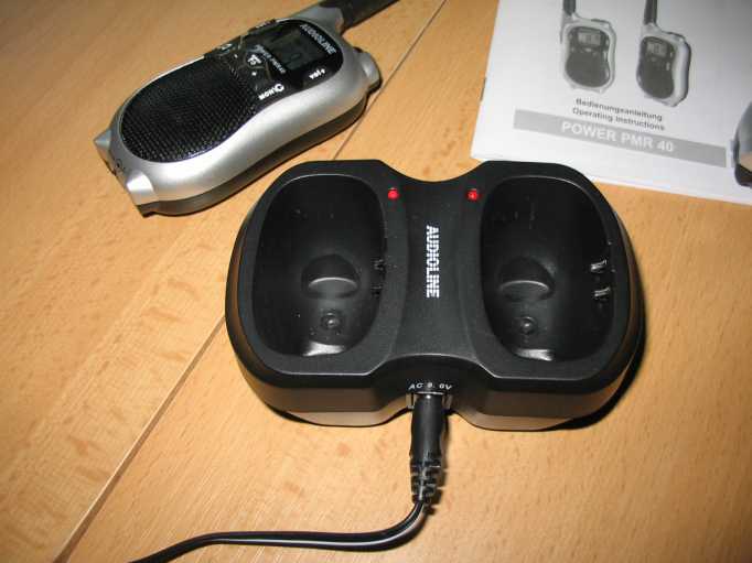 Man sollte auch den Bestätigungston einschalten, der beim Gesprächspartner ertönt, wenn die Sprechtaste losgelassen wird. Dazu beim Einschalten des Gerätes die + Taste gedrückt halten. |