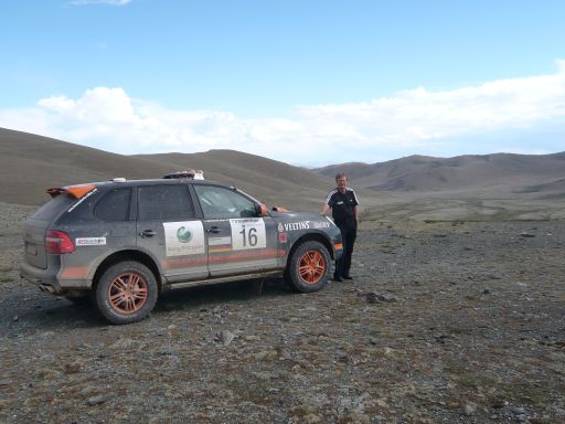 ![]() Porsche-Copilot Wolf-Hendrik Unger trainiert in Arjeplog: Für mich war es auch ein glücklicher Zufall, dass Wolf-Hendrik Unger, ein Porsche-Copilot von der Transsyberia 2008, beim Sicherheits-Lehrgang dabei war und uns von der Rallye von Moskau bis Ulaanbaator viele Einzelheiten mit Bildern und Filmen berichtete. Er fuhr mit Carles Celma als zweites Deutsches Team im Porsche Cayenne S mit Nr. 16. Hendrik hat Rallyeerfahrung, er fuhr 1985 die Pharaohs Rallye und 1986 die Rallye Paris-Dakar. |