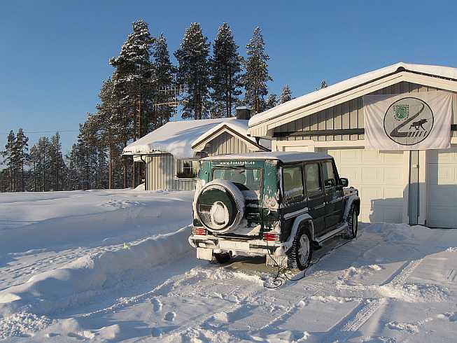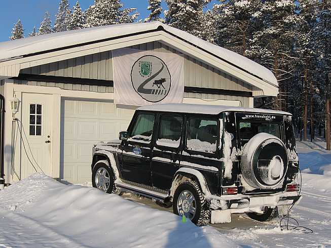Und es wurde über Nacht sehr kalt, bis zu - 30 Grad C. Tagsüber waren es dann nur bis zu - 10 Grad C. Der G hing über Nacht immer am 230V-Netz wie in Nordschweden üblich. |
