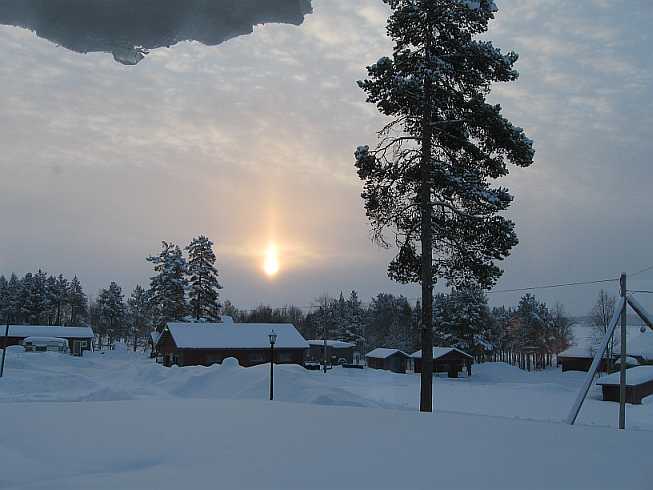 Am gleichen Tag (02.02.2009) fuhren wir noch spät nachmittags von Laisvik nach Arjeplog. Vor dem Ort sahen wir einen fantastischen Sonnenuntergang (15:30 Uhr). |