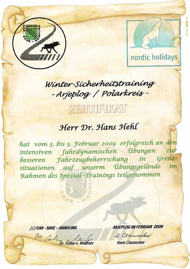 ![]() Bei dieser 2. Fahrt vom 29.01. bis 09.02.2009 nach Arjeplog zum Sicherheitstraining in Laisvik auf dem Lake Hornavan beim Folker v Meissner, damalige Webseite www.car-save-handling.de konnte ich auf die Erfahrungen der ersten Reise 2008 zurückgreifen. So fuhr ich wieder mit dem Autoreisezug von München (ab 22:26 Uhr) nach Hamburg-Altona (an 8:09 Uhr) und mit der Fähre (Stenaline) von Kiel (ab 19:00 Uhr) nach Göteburg (an 09:00 Uhr). Zur Übernachtung waren wir wieder in Ytterhogdal bei Curt/Elisabeth im Wärdshuset Knoppergarden, das die Jahre danach nicht mehr existierte,. nun aber wieder bewirtet wird (https://www.knoppergarden.com 2024). |