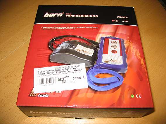 Für die Seilwinden der Fa. Hornwinch gibt es bei der Fa. Därr eine Funkfernbedienung W002A für 34,95 Euro inkl. MwSt. (433 MHz-System), die eine Reichweite von fast 100 m besitzt. |