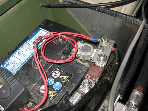 | Wie der Selbstbau einer Vorsicherungseinheit beim Wettbewerb-280GE verwirklicht wurde, steht im Bericht über den Batterietrennschalter. Mit dem Einbau des Trennschalters und der Vorsicherungsdose hat sich natürlich der Anschluss am Pluspol geändert. |