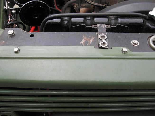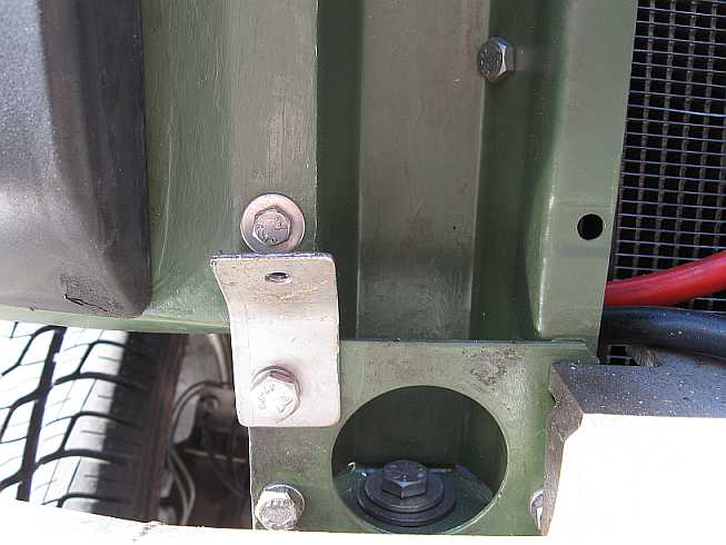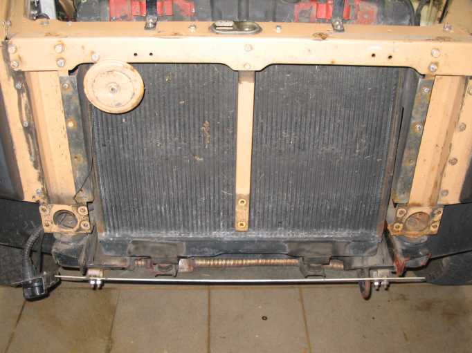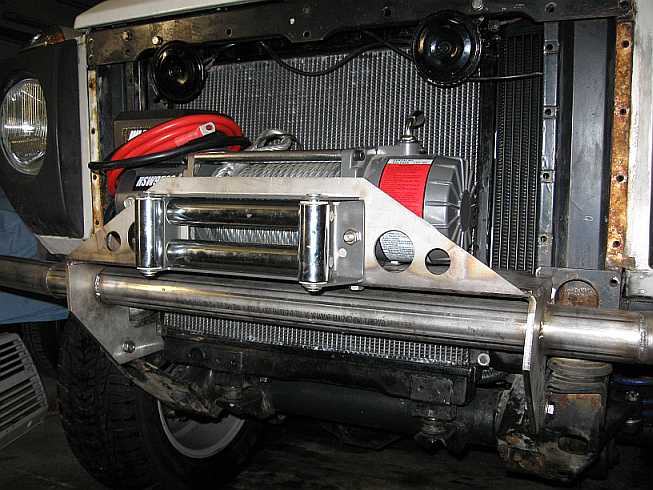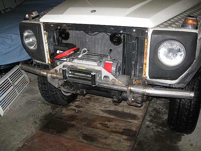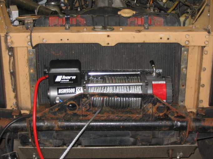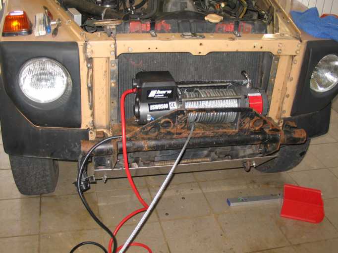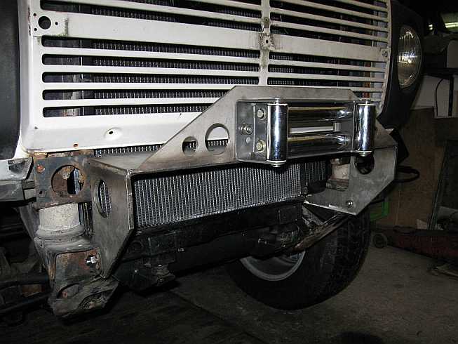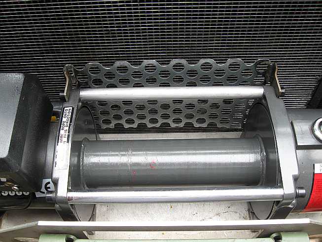 | Die Seilwinde passt genau in die Halterung und schränkt den Böschungswinkel nicht ein. Zum Kühler sind noch über 2cm Platz. | ![]() |
