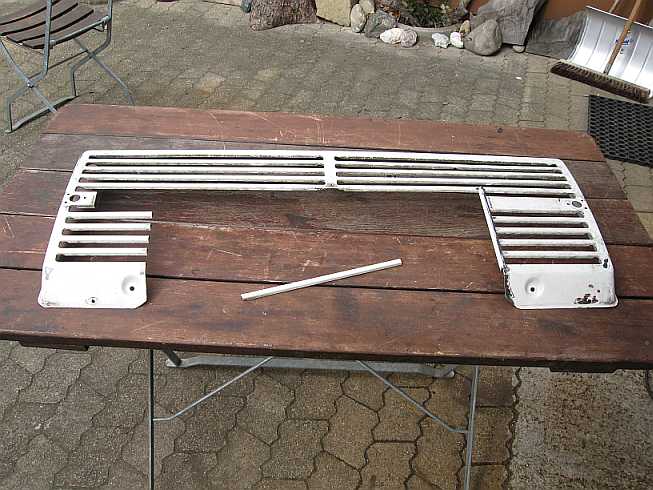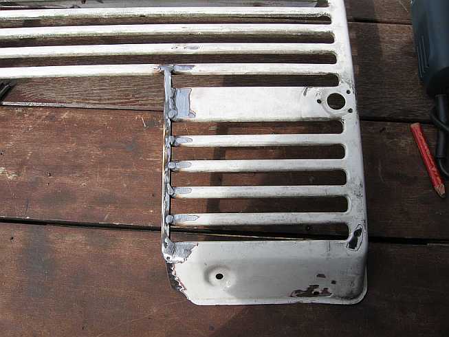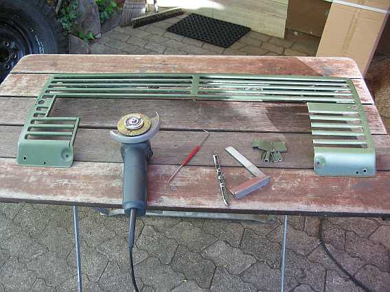 | 1. Umbau: Das Kühlergitter muß für die Seilwinde ausgeschnitten werden, da die Seilwinde sehr dicht am Kühler sitzt. | ![]() |
