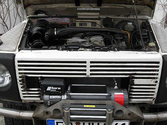 2009 wurde eine von der Firma Därr gesponserte Seilwinde HSW9500 an einen 280GE Bj. 1984 angebaut und getestet. Die Montageform sollte ähnlich wie auf den Bildern eines Wettbewerbs-300GE (Felix) für die Transilvania-Trophy (TAT) sein. |