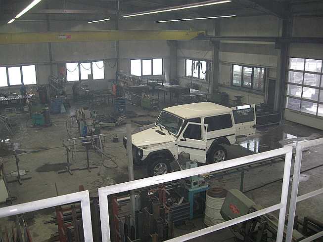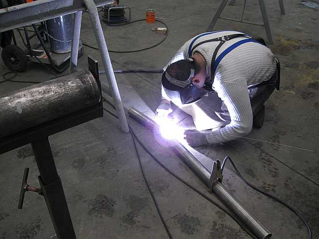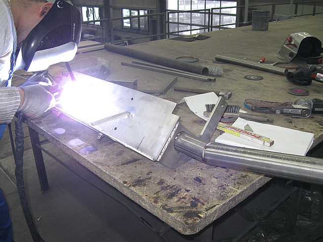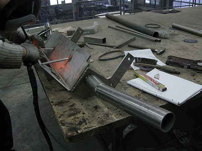 Bei einer Metallbaufirma werden die Teile zusammengeschweißt, wobei die Anpassung am Fahrzeug erfolgt. Die Teile werden zunächst nur punktweise zusammen geschweißt. |