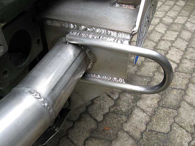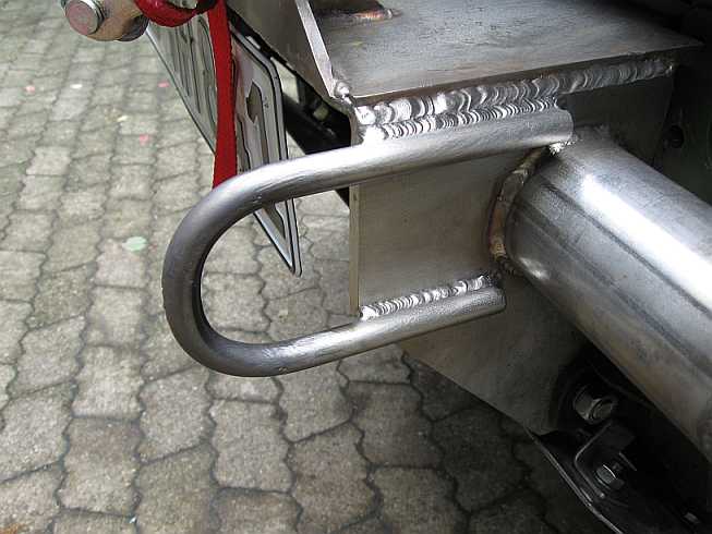| Nun kommt die Stoßstange aus einem V2A-Rohr 60 x 3,6 mm dazu. Sie verstärkt auch gleich den Windenbock. | ![]() |