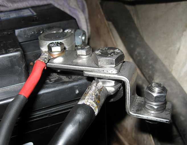 Leitfähigkeit: , siehe Wikipedia Für hohe Ströme ist also V2A als Leiter nicht so gut geeignet. Die Leitfähigkeit (in Siemens pro Meter) bei 27 Grad C. von Kupfer beträgt etwa 58,0 x 10|6 S/m, von Eisen (unlegiert) 10,02 x 10|6 S/m, von Edelstahl (1.4301) aber nur 1,4 x 10|6 S/m. Kupfer leitet über 40 mal besser als V2A. spez. Widerstandswerte: siehe Wikipedia Kupfer: 0,0169 - 0,0172 Ohm x mm2/m , V2A: 0,72 Ohm x mm2/m, Eisen 0,1 bis 0,15 Ohm x mm2/m ) Da nach 2010 der 280GE ab und zu und nur Kurzstrecke bewegt wurde, waren die Batterien nur mit dem Ladegerät im vollen Ladezustand zu halten. |