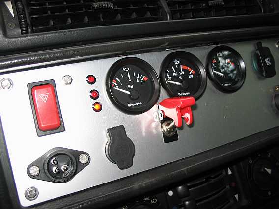 Zur Sicherheit wird ein zusätzlicher Schalter mit Abdeckkappe und eine rote Kontrollleuchte eingebaut. Der Schalter verbindet die 12V-Leitung zur Steckdose der Fernbedienung. |