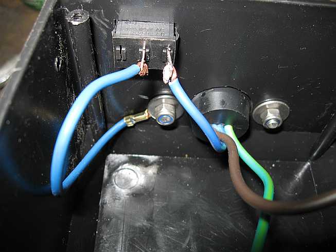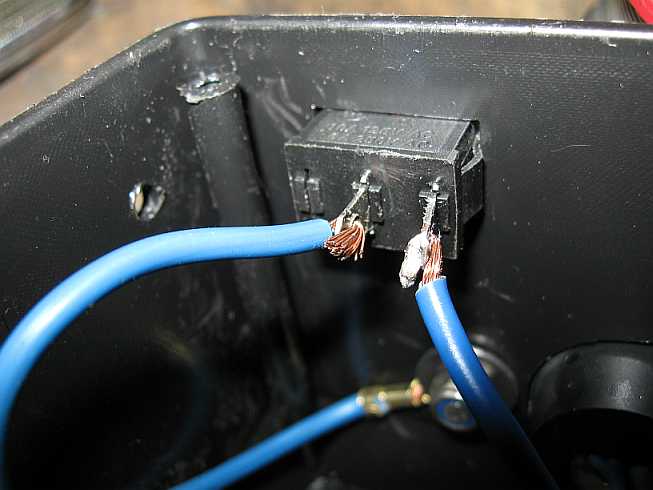 | Die Kabel sollten durch die Löcher (mit 2mm Bohrer aufbohren) an den Schalterfahnen geführt und dann erst verlötet werden. | ![]() |