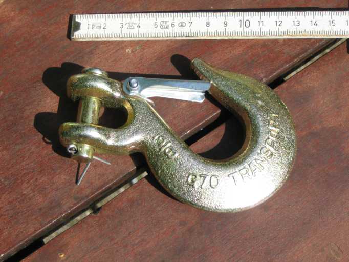 Damit bei einem Bruch von Seil, Schäkel oder anderer Teile das Seil nicht peitschenartig zurück schlägt, wird oft eine Decke oder eine Jacke auf das Seil etwa in der Mitte gelegt. Praktisch ist da eine wasserfeste Ausführung als Seil-Schlagschutz, die es bei Fa. Därr oder Fa. Hornwinch gab. Stahl- und Seilschäkel sind im Rallye-Tipp beschrieben. |