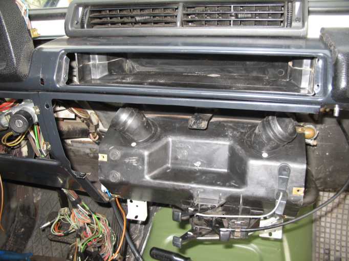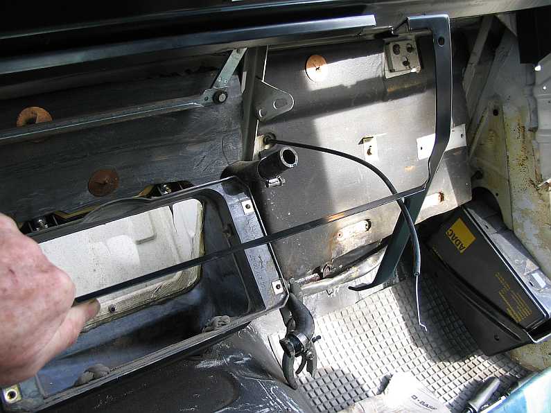 | Das ist die Luftöffnung für den Gebläsekasten, der mit 4 Schrauben befestigt ist. Dabei wurde auch noch einiges vom Armaturenbrettaufbau vereinfacht (servicefreundlich) siehe Armaturenbrett. | ![]() |