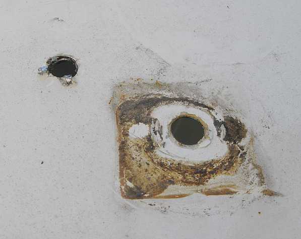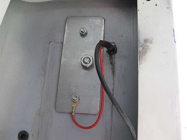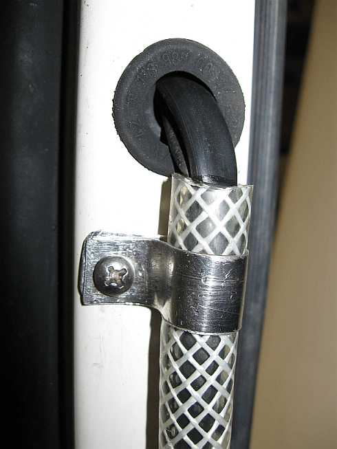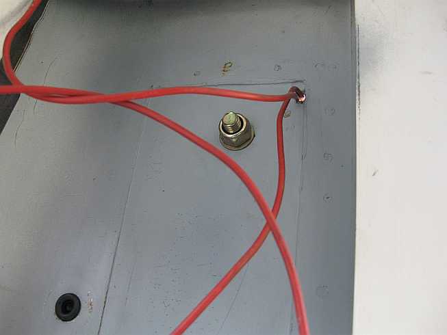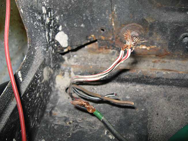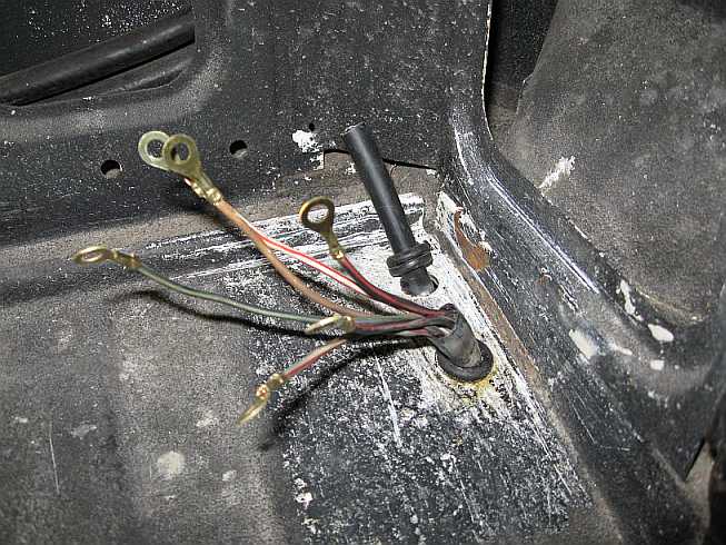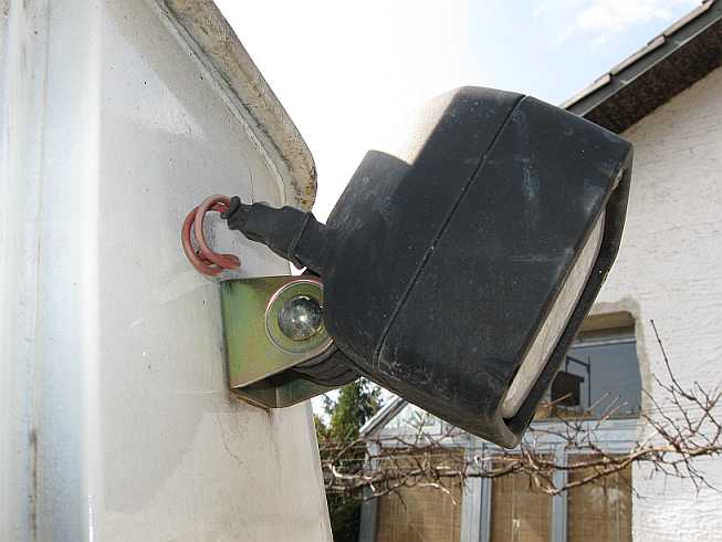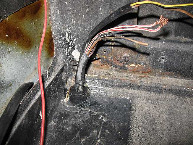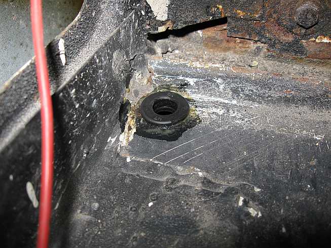| Allerdings war bei der Montage von den Vorbesitzern wieder mal wenig Sorgfalt aufgewendet. Es fehlen die Kabeltüllen. Die Kabel waren einfach durch ein Loch im Blech geführt. | ![]() |
