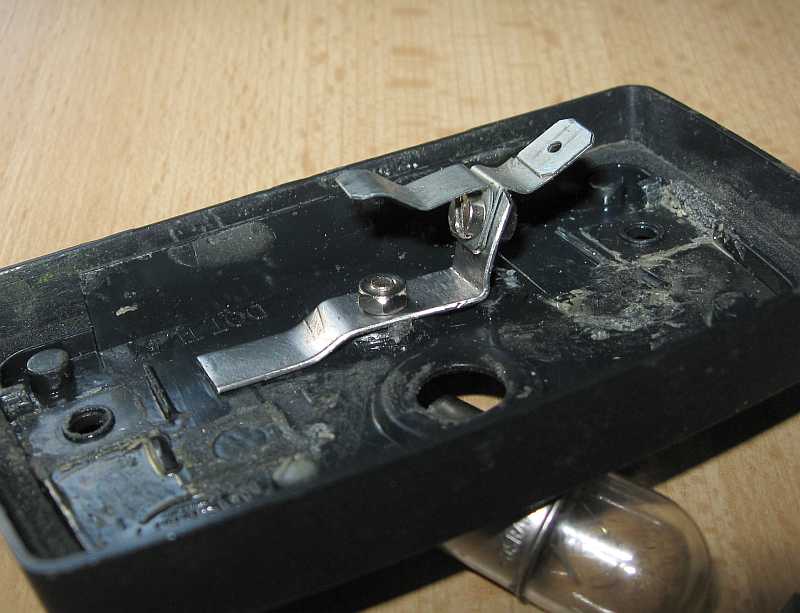 | Der "Puppenstuben"-Schiebeschalter in der Lampe taugt nichts. Es können nur Stecker mit kleiner Isolierkappe verwendet werden, sonst klemmt der Kontaktbügel. |