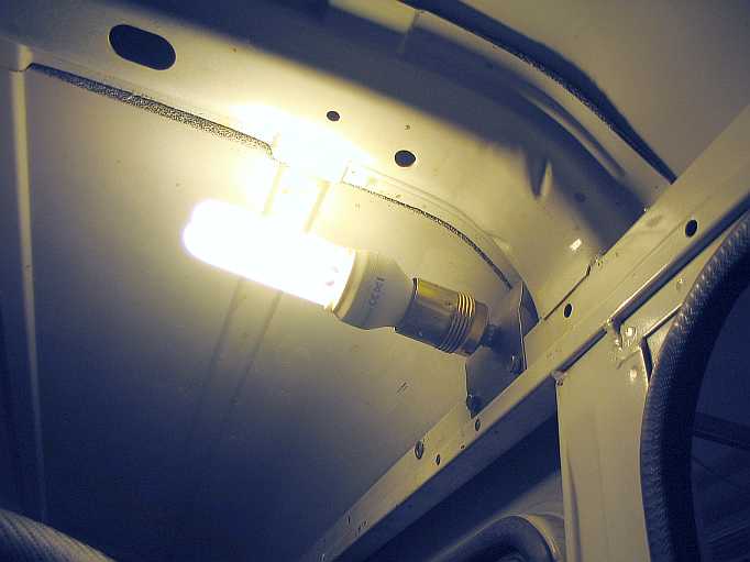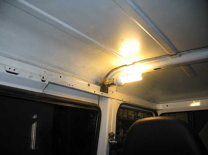 | Bei +3 Grad dauert es wie bei allen Stromsparlampen, bis die volle Helligkeit erreicht ist. Möglich wäre auch die Montage an der Decke hinter den Sitzen und über der Hecktür. | ![]() |
