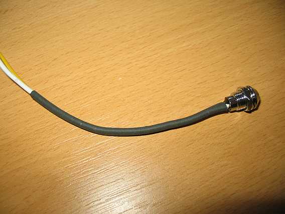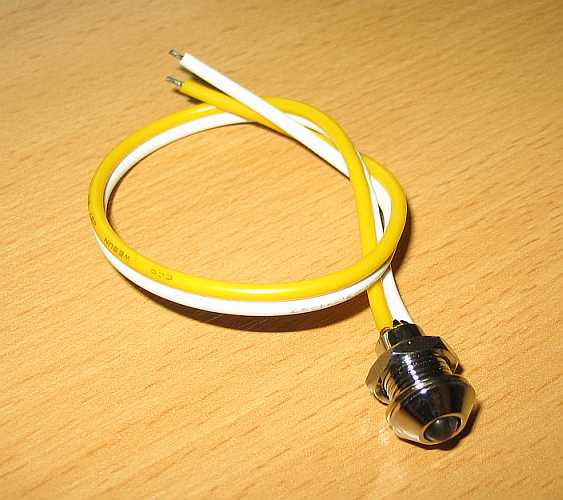 | Das Kabel sollte zur LED hin mit einem Schrumpfschlauch verstärkt werden. Es gibt sie in den Farben rot, gelb, grün und blau. Von Fa. Reichelt gibt es ähnliche Kontrolllämpchen. Die roten und grünen LED (Strom ca. 27 mA) habe ich ins Armaturenbrett vom 280GE eingebaut. | ![]() |