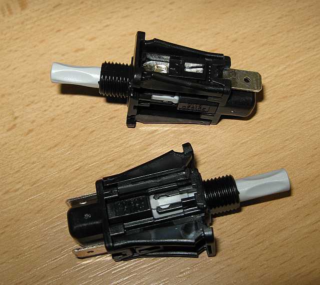Die Türkontakt-Schalter von 1984 sind 2008 völlig hinüber, der Kunststoff bricht schon beim Ausbau. Sie werden durch neue Schalter A2018202110 - ersetzt. Mit dem neuen Schalter kann bei geöffneter Tür durch Herausziehen des Stiftes das Innenlicht abgeschaltet werden.