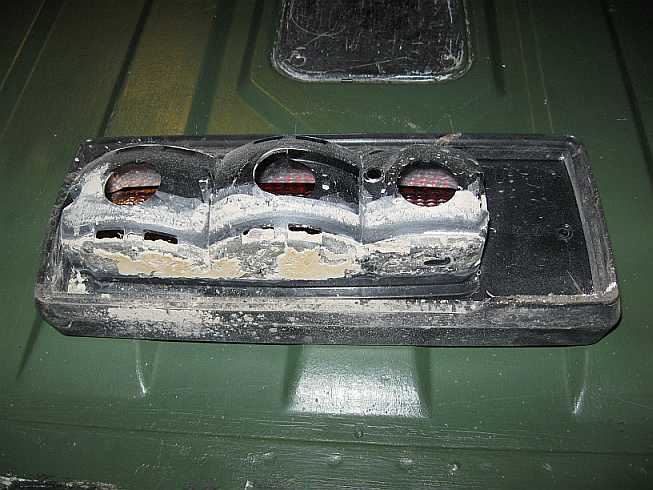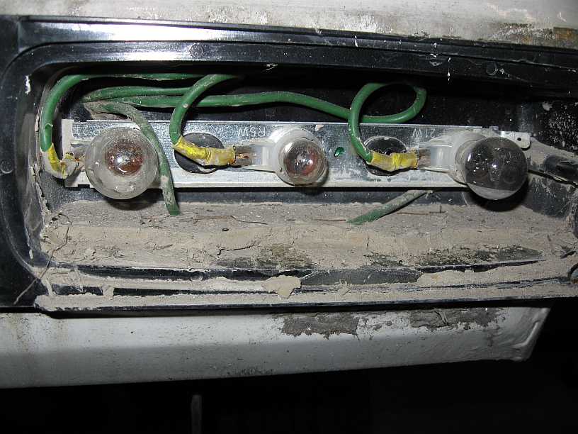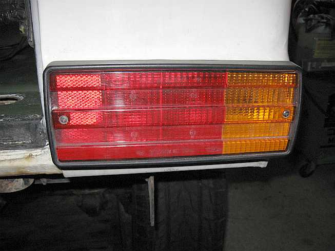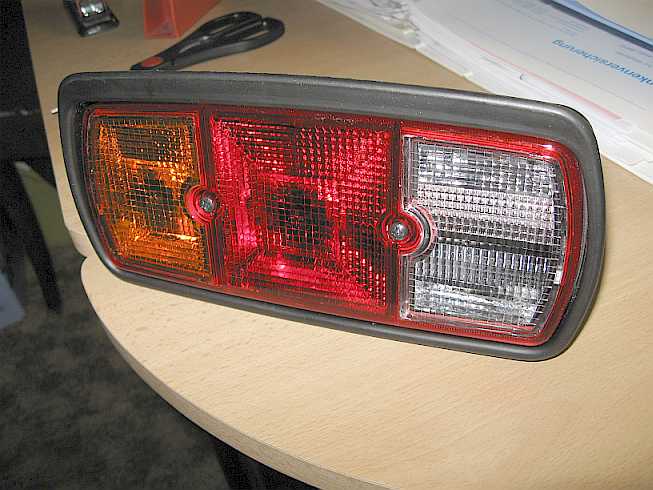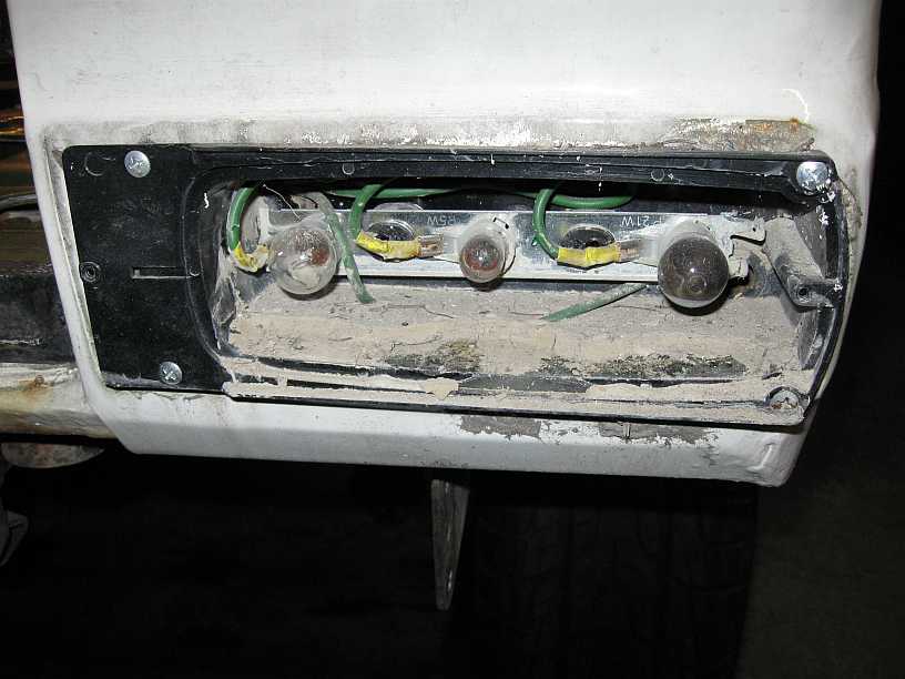 | Bei einer Restaurierung 2006 wurden von den Vorbesitzern die Schlussleuchten vom 463 eingebaut. Ich finde das nicht gut, da es das Leuchtenglas/Lichtscheibe nicht einzeln gibt, wohl aber von der alten Leuchte vom 460. Einzelheiten dazu sind im Tipp Schlussleuchten 460/463 nachzulesen. An der äußeren Ecke ist die Leuchte auch nicht am Blech anliegend, somit undicht. Im Schlusslichtgehäuse fehlte die Gummitülle. | ![]() |