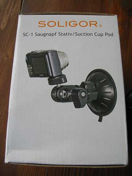 | Die Soligor-Saugnapf-Halterung SC-1 (28,20 Euro inkl.) erschien mir stabil genug. | ![]() |