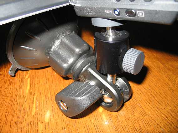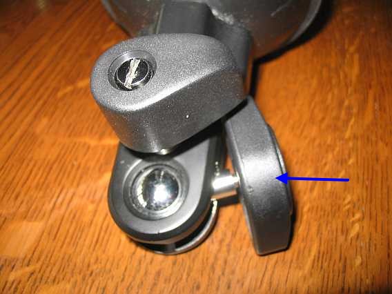 | Das Rändelrad (1. Bild, Pfeil) stört, es wird nicht benötigt. Der Camcorder passt auf den Adapter. Nun kann beim Fahren einwandfrei gefilmt werden. | ![]() |