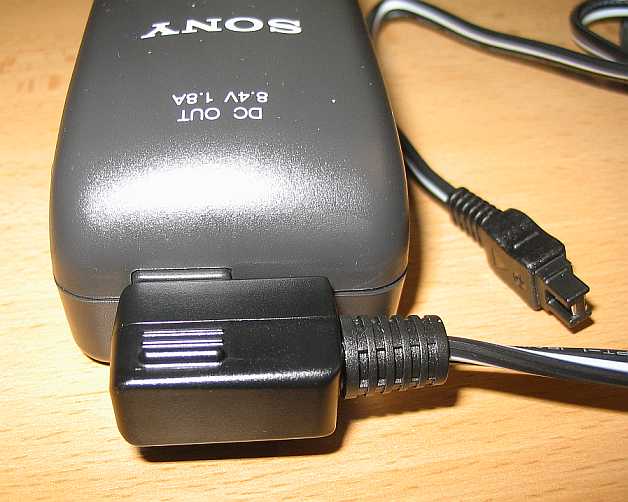 | Von Sony gibt es einen DC Car Battery Adapter, Nr. DCC-L50B mit 8,4 V, 1,5A zum Betrieb des Camcorders, ca. 91 Euro bei Fa. Amazon. | ![]() |