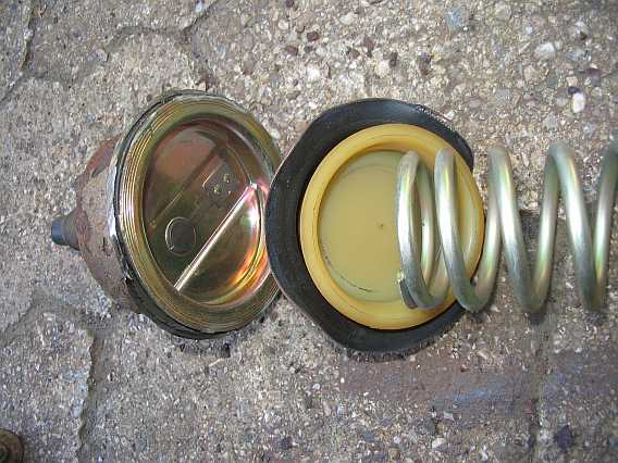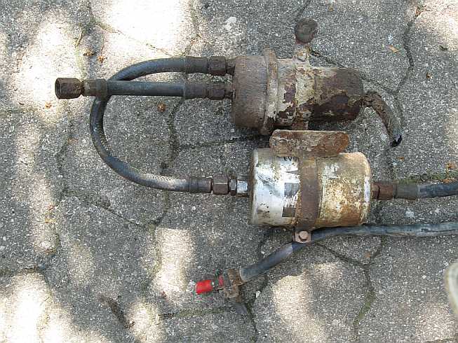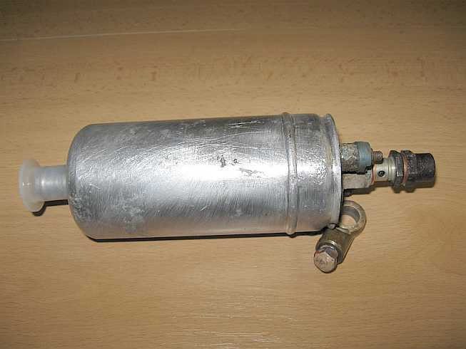| Der kurze Schlauch vom Filter (3. Bild) ist beim Druckspeicher noch am mittleren Stutzen angeschraubt, er sollte laut EPC an den seitlichen Anschluss kommen. Nachdem ich den Druckspeicher aufgeschnitten habe, weiß ich, dass es vermutlich egal ist (siehe u.a. Bilder). |