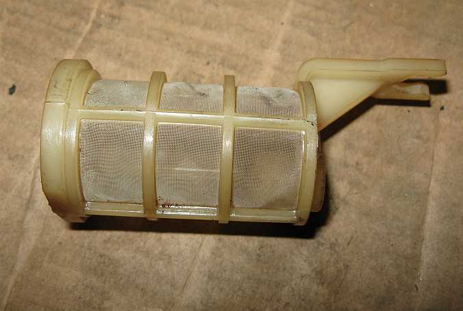 | Der Feinfilter ist nur aufgesteckt, er liegt am Tankboden auf, wobei ab etwa 5mm Resthöhe nicht mehr angesaugt werden kann. | ![]() |