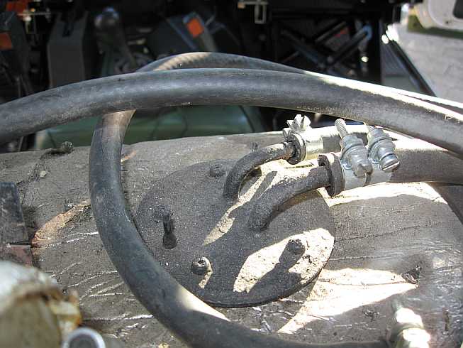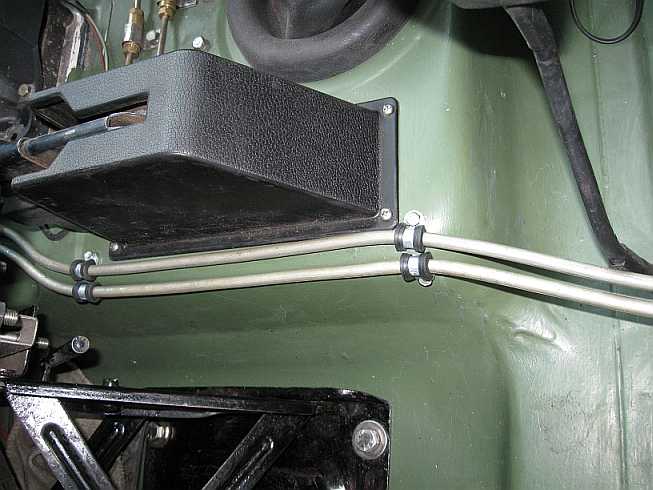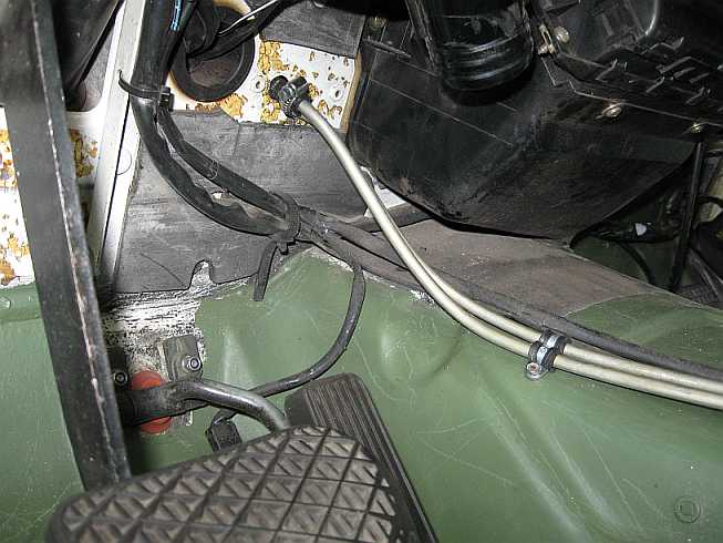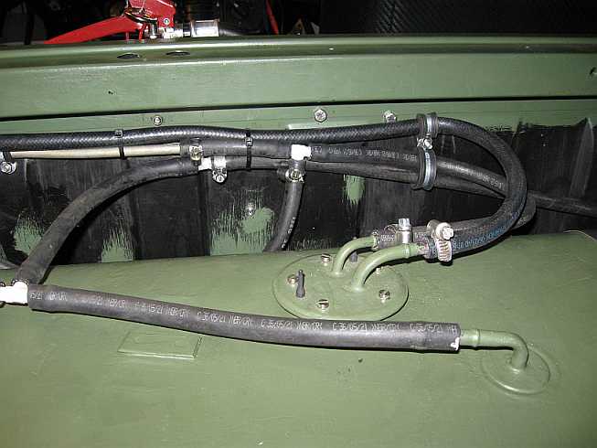 Tankleitungen: ![]() Die Benzinleitungen werden mit Schellen an der Trennwand befestigt. So werden Scheuerstellen vermieden. |