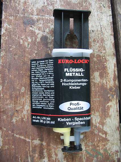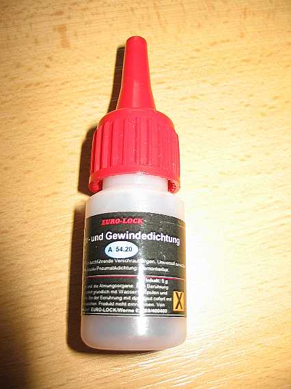 | Die Gewinde an der Pumpe werden mit Teflonband oder mit Flüssigdichtung, z.B. von Eurolock (A 54.20 - 5,25 Euro inkl. MwSt.) abgedichtet. | ![]() |