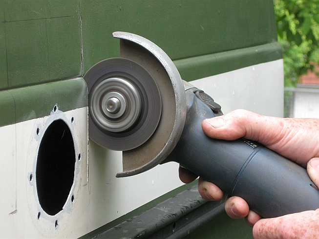| Mit einer Metall-Stichsäge wird die Öffnung (84 mm) etwas kleiner ausgeschnitten. | ![]() |