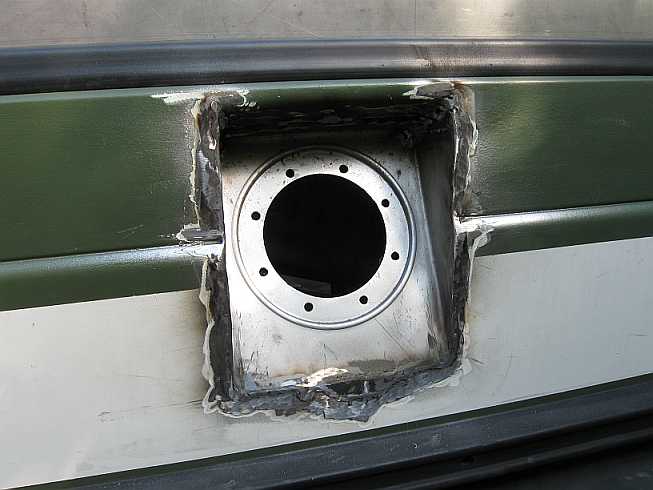 aus V2A: ![]() Der Tank sollte nicht auf dem Heckboden aufliegen. Mit einer soliden Unterkonstruktion aus V2A (mit dem Heckboden verschraubt) liegt der Tank etwa 5 cm höher. |