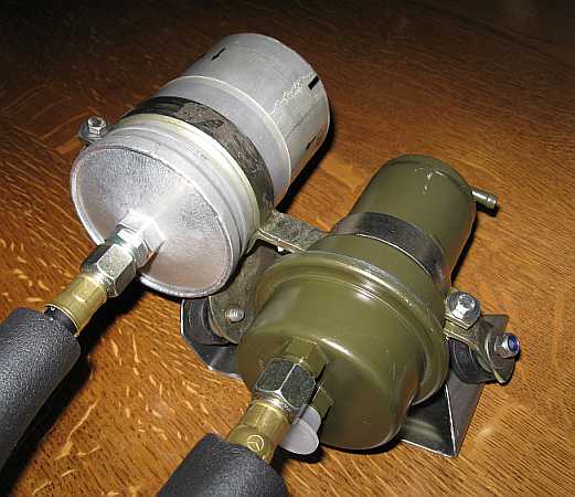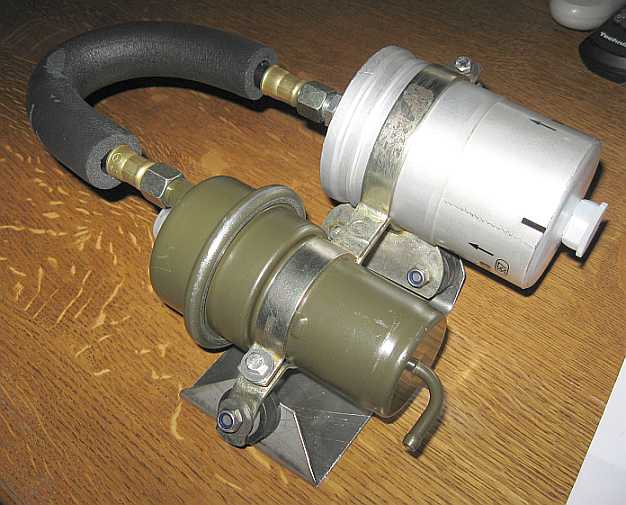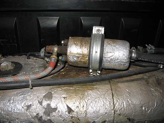 Pumpenmontage: Da die Pumpe an der Trennwand befestigt war, wurden die Laufgeräusche unangenehm hörbar, als die umgebaute Auspuffanlage wesentlich leiser war. Die Trennwand wirkte als Resonanzverstärker. Auch die Montage der Grundplatte mit Silentblöcken brachte keine Besserung. Erst als ich die Pumpe ohne Befestigung probeweise in Verpackungsschaumstoff einwickelte, war Ruhe. Ich besorgte mir nun flammhemmenden Schaumstoff (www.schaumstoff-lager.de) und isolierte die Benzinpumpe und die Vorförderpumpe. Jetzt hört man nur noch die Uhr ;) |