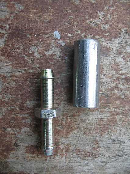 | 1. Versuch: Ich fand keinen Schlauch-Adapter von 8 mm auf 15 mm Inenndurchmesser. Auf ein ca. 6 cm langes Stück einer Metall-Benzinleitung ( 8 mm Innendurchmesser) wird ein Stück Benzinschlauch A2024766726 - 30,13 Euro ohne MwSt. geschoben. Dieser hat 15 mm Außendurchmesser. Auf diesen Benzinschlauch und auf den Pumpenausgang passt nun das kurze Benzinschlauchstück mit 15 mm Innendurchmesser. | ![]() |