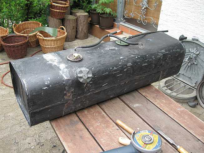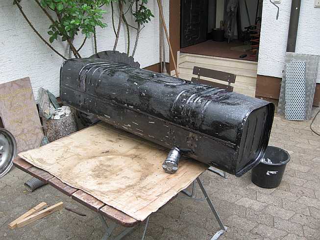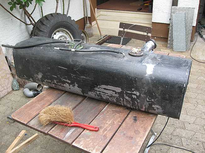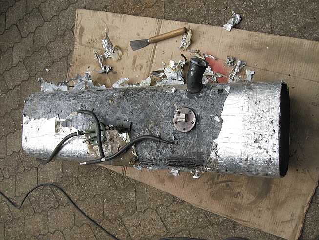 Tanküberholung: ![]() Zunächst wird mal der Innentank überholt. Dazu muss diese komische Schaumstofffolie weg. Leider kann sie nur abgekratzt werden, verschiedene Lösungsmittel sind nicht geeignet. |