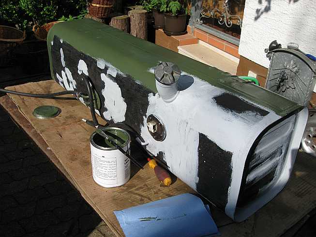 | Anschließend wird wieder grundiert und grün lackiert. | ![]() |