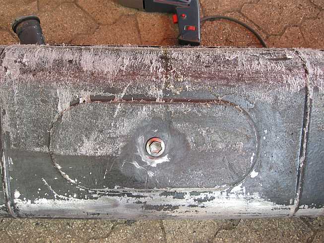 | Auf der Unterseite ist eine Ablassschraube. Eine chemische Entrostung mit Brunox folgt. | ![]() |
