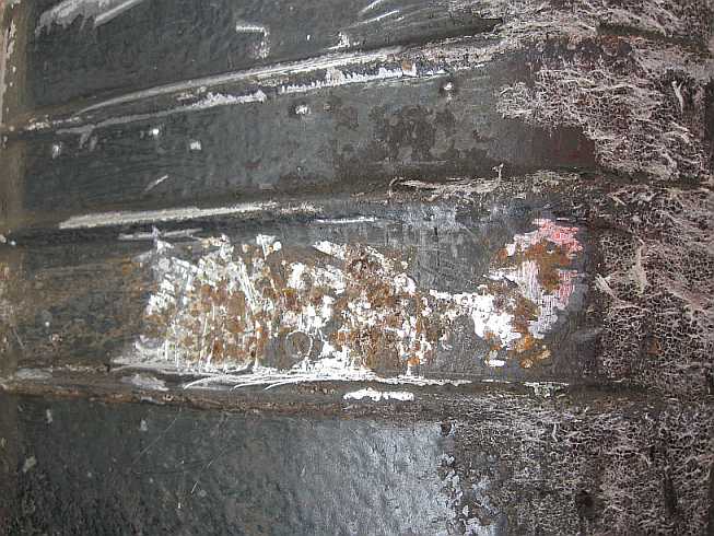 | Findige Zeitgenossen hatten eine schwarze Farbe auf den Rost gestrichen. | ![]() |